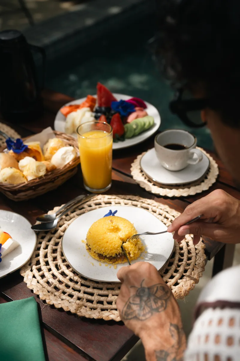 A gastronomia do Villa da Mata é baseada em ingredientes locais, promovendo uma nutrição consciente.