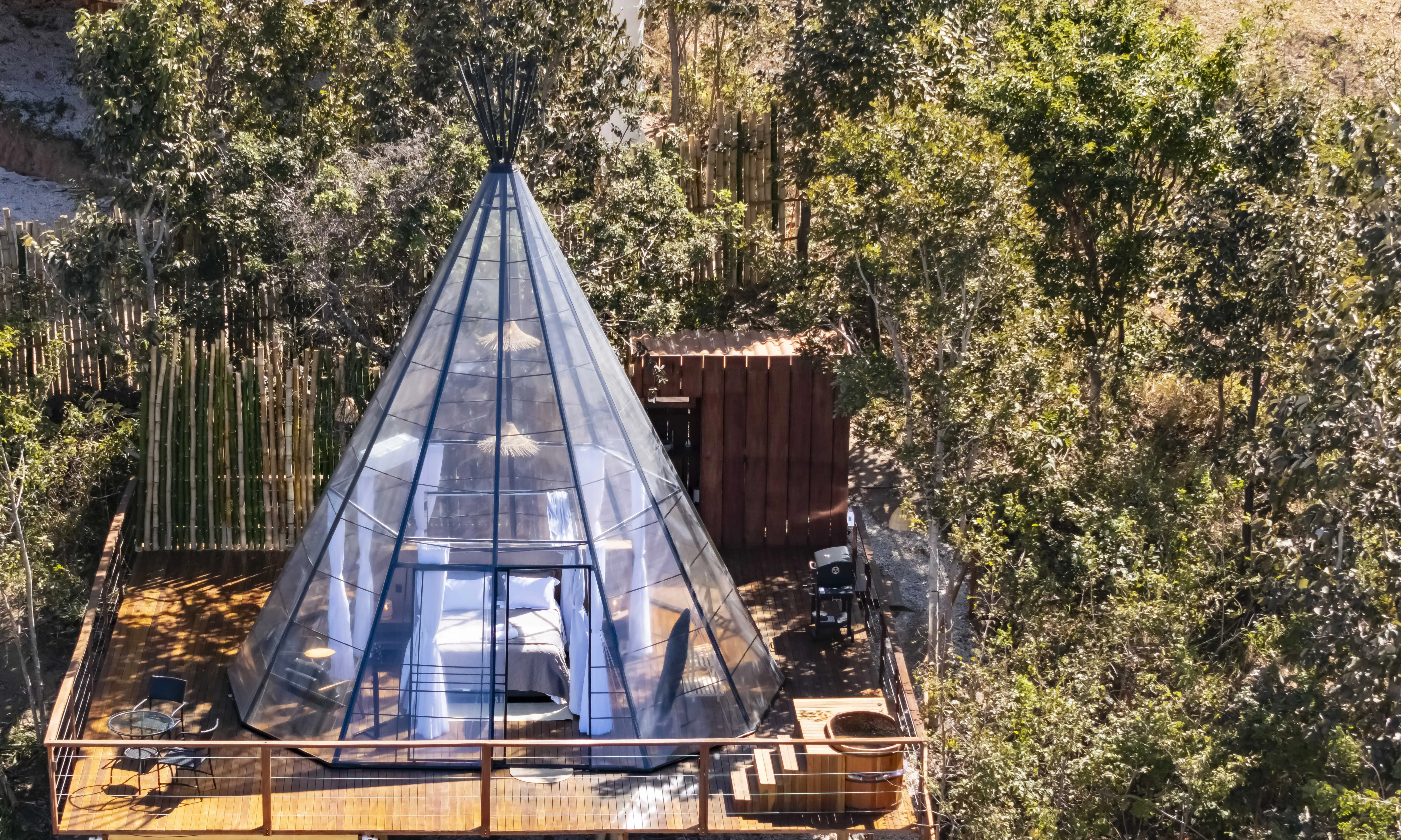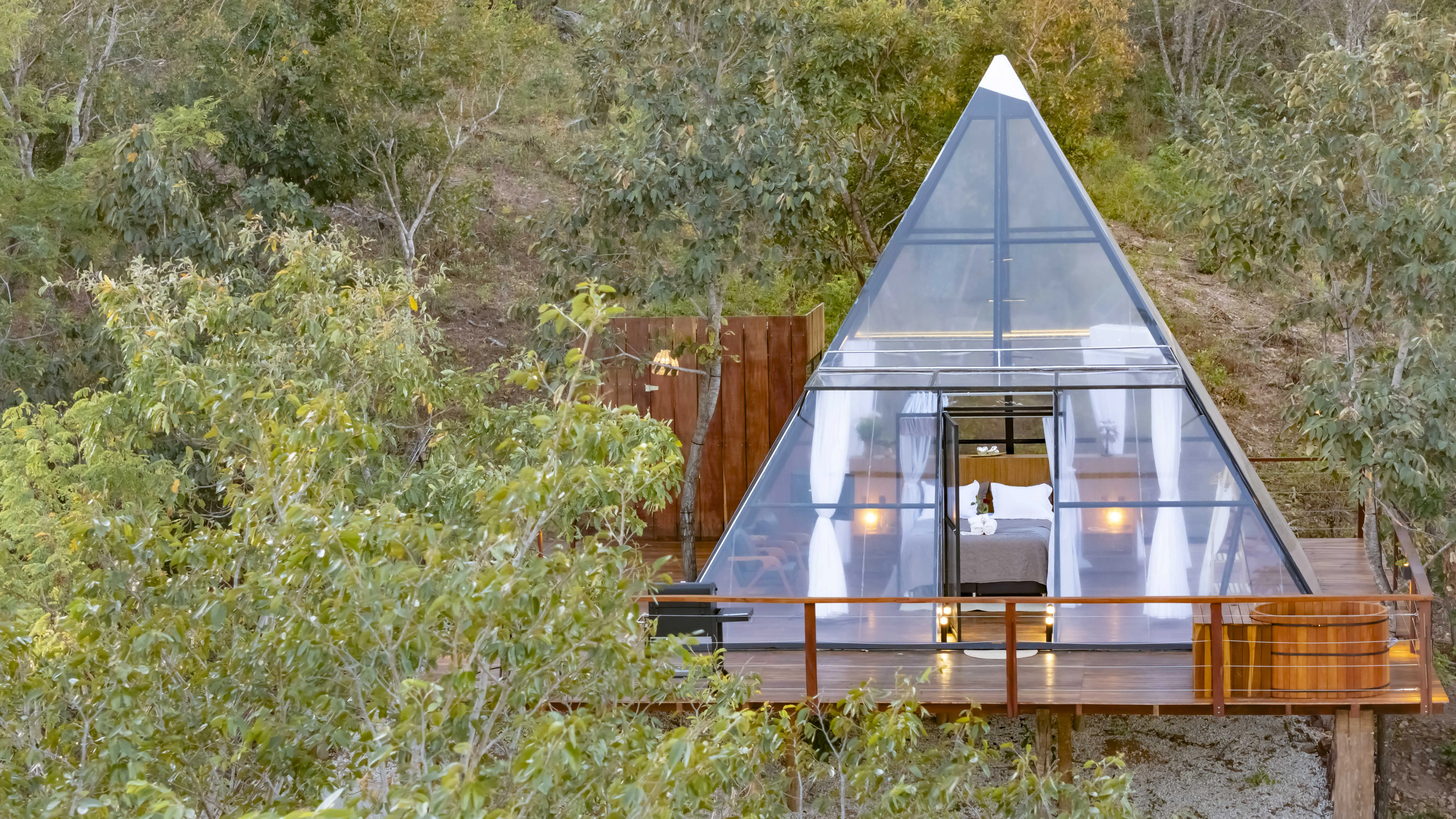 A Villa das Cabanas oferece uma experiência única de hospedagem em meio ao cerrado, com cabanas luxuosas e transparentes projetadas para proporcionar conexão com a natureza sem abrir mão do conforto. Localizada a poucos metros da entrada de Pirenópolis-GO, combina privacidade total, vista panorâmica e estrutura de alto padrão, em um ambiente silencioso e acolhedor. Ideal para casais e momentos especiais, une romantismo, contemplação e tranquilidade, com acesso facilitado à cidade.