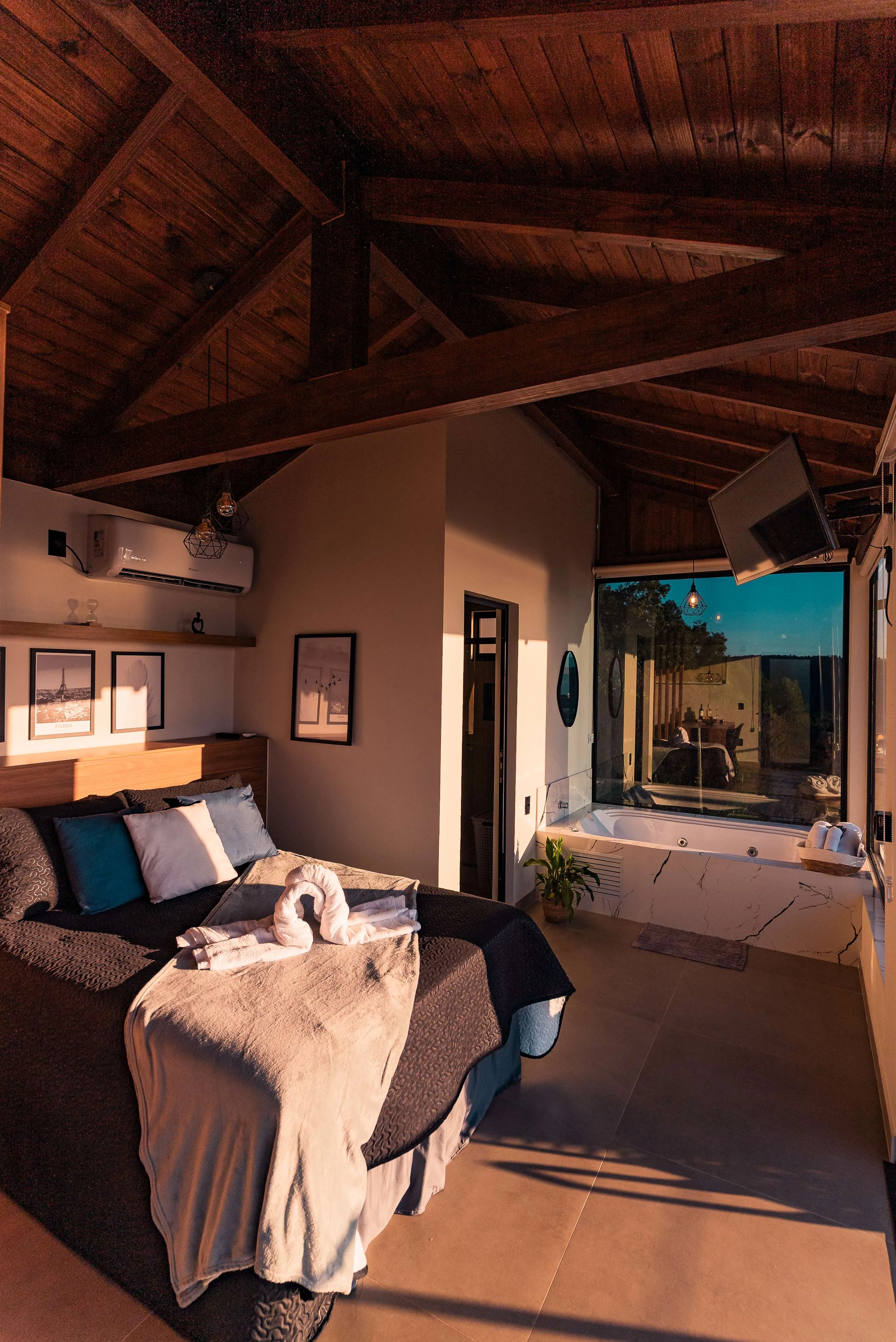Ar condicionado Secador de cabelo TV a cabo / Smart TV Jacuzzi / Ofurô / Banheira Coberta Frigobar Lareira Máquina de Café Enxoval de Luxo (+ Roupão e Pantufa) Sauna Cozinha Estação de trabalho (mesa e cadeira) Piscina Aquecida ou climatizada Borda Infinita Coberta