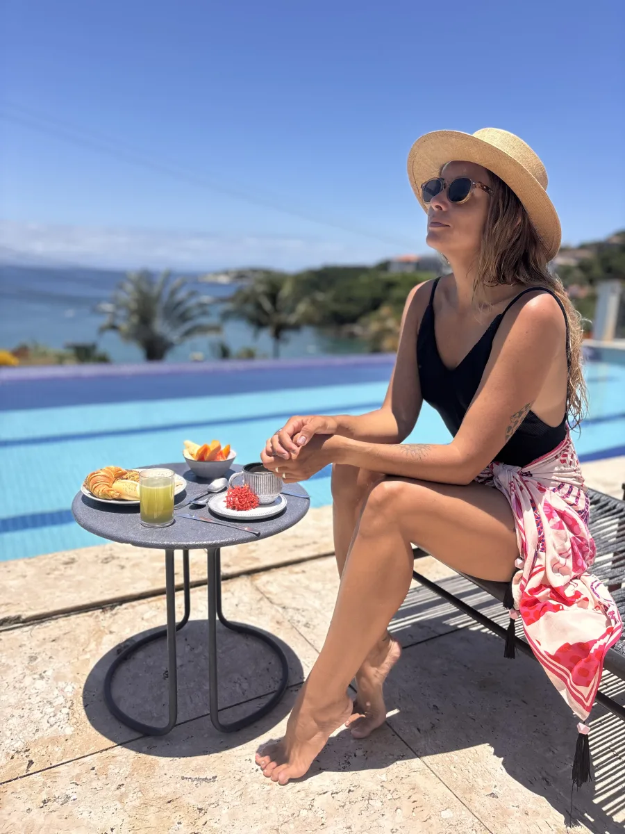 O hotel também conta com um charmoso bistrô, ideal para jantar enquanto aprecia um dos mais belos pôr do sol de Búzios. O café da manhã é servido diariamente, proporcionando um início de dia tranquilo.