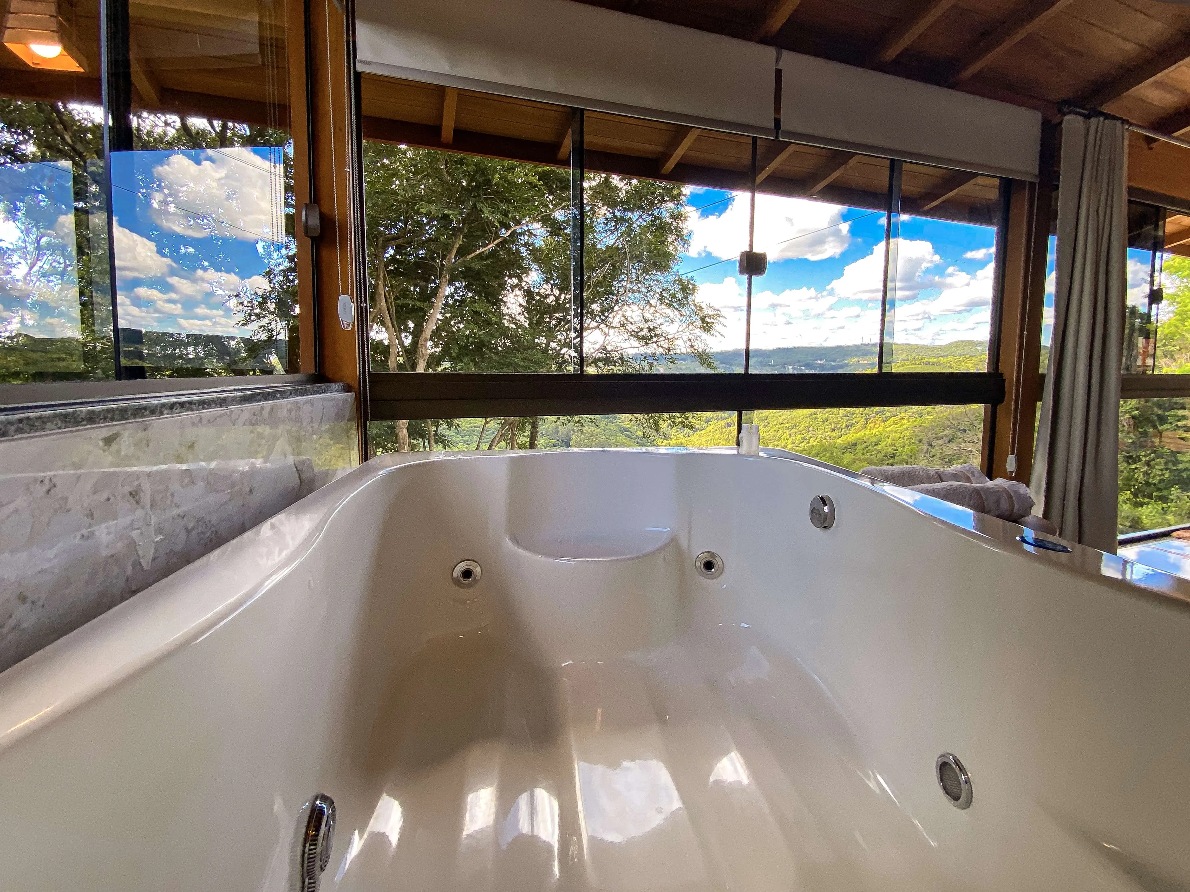 Ar condicionado Secador de cabelo TV a cabo / Smart TV Jacuzzi / Ofurô / Banheira Coberta Frigobar Lareira Máquina de Café Enxoval de Luxo (+ Roupão e Pantufa) Sauna Cozinha Estação de trabalho (mesa e cadeira) Piscina Aquecida ou climatizada Borda Infinita Coberta