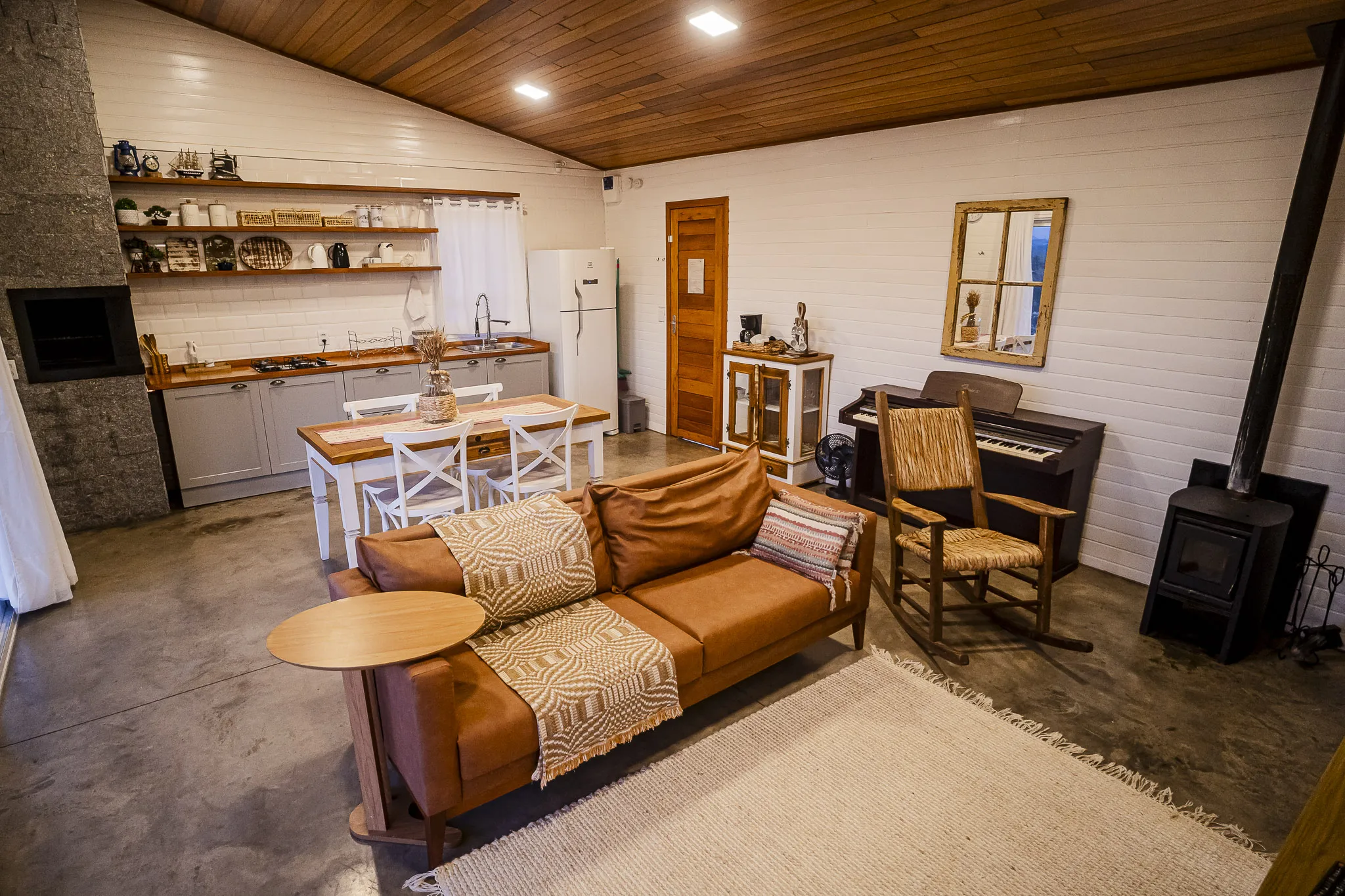 Totalmente equipada para a estadia, a casa conta com cozinha completa com utensílios para o preparo de refeições, além de pequena disponibilidade de itens básicos como sal, óleo e açúcar. Também são oferecidos itens de limpeza e higiene, como detergente, sabonete líquido, papel higiênico e toalhas. As refeições não estão inclusas, permitindo que cada hóspede leve e prepare seus próprios alimentos, tornando a experiência ainda mais personalizada. Pacotes de café da manhã podem ser contratados à parte, enriquecendo a vivência no campo.