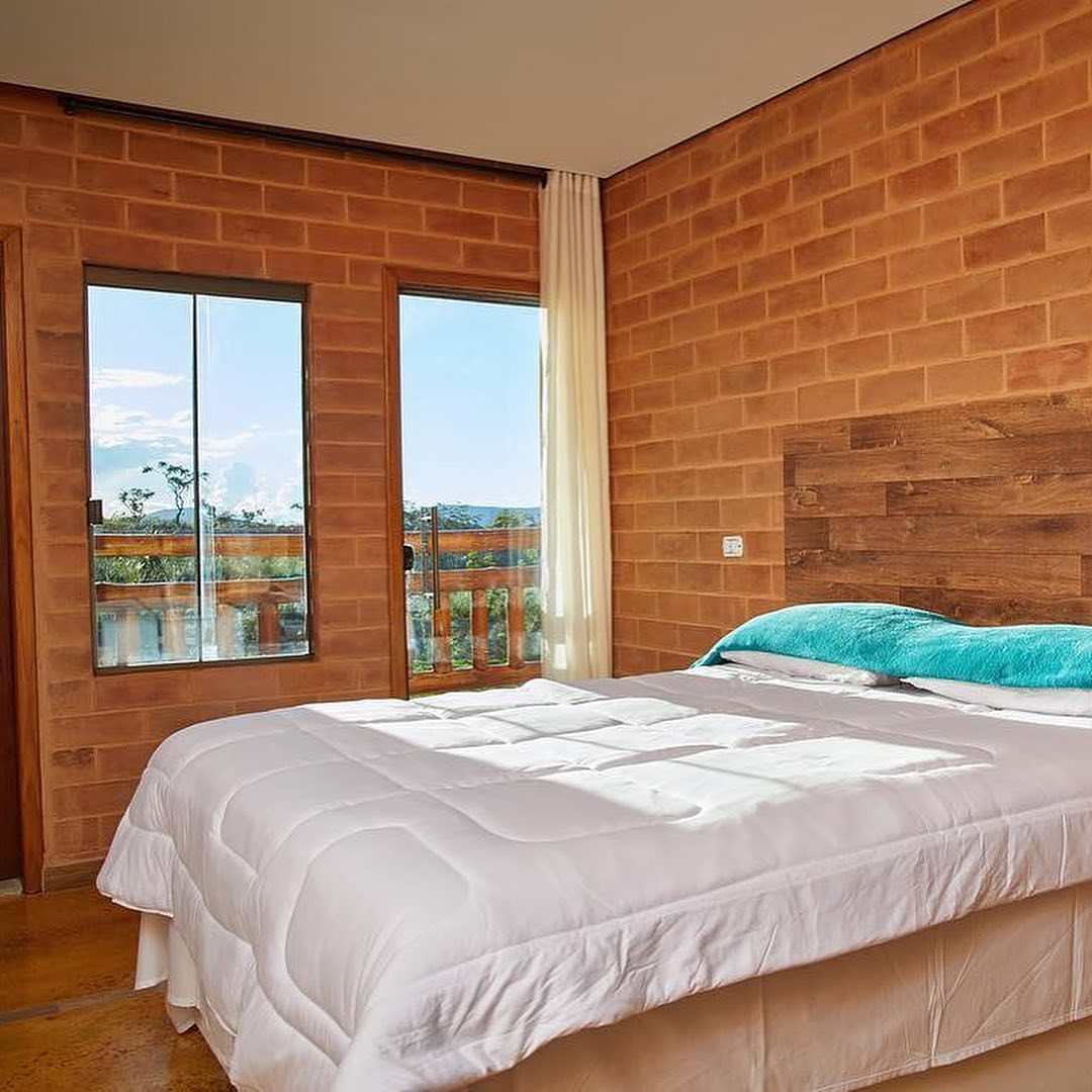 As suítes são espaçosas e acomodam confortavelmente até 3 pessoas em cada uma. A casa inteira pode acomodar um total de 23 hóspedes para grupos, eventos e casamentos; Todas as suítes possuem varanda com vista para as montanhas, ar condicionado, smart TV, frigobar, cama King Size e banheiros individuais. A cozinha é de uso comum dos hóspedes e está equipada.