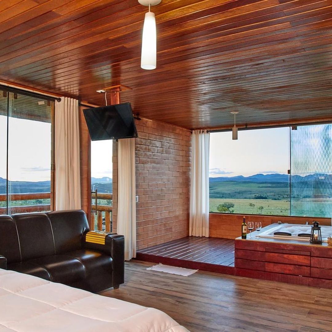 Ar condicionado Secador de cabelo TV a cabo / Smart TV Jacuzzi / Ofurô / Banheira Coberta Frigobar Lareira Máquina de Café Enxoval de Luxo (+ Roupão e Pantufa) Sauna Cozinha Estação de trabalho (mesa e cadeira) Piscina Aquecida ou climatizada Borda Infinita Coberta